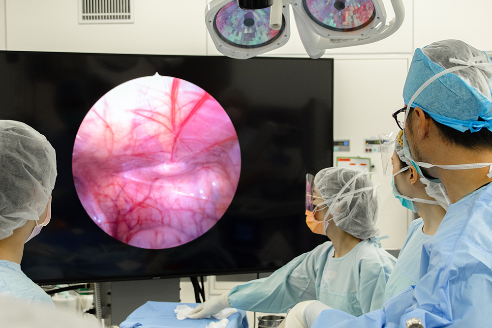 超高精細な大画面8Kモニターで行う私たちの繊細な鏡視下手術では、小児の非常に微細な血管や神経を傷つけずに温存することが可能となり、お子様の将来を考え、安全・確実な外科治療を目指して、丁寧に行っています。